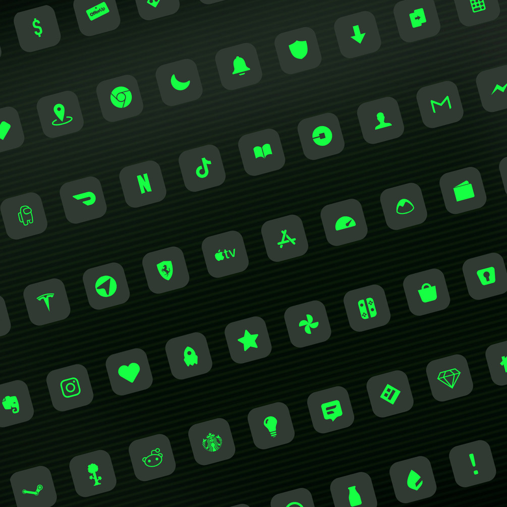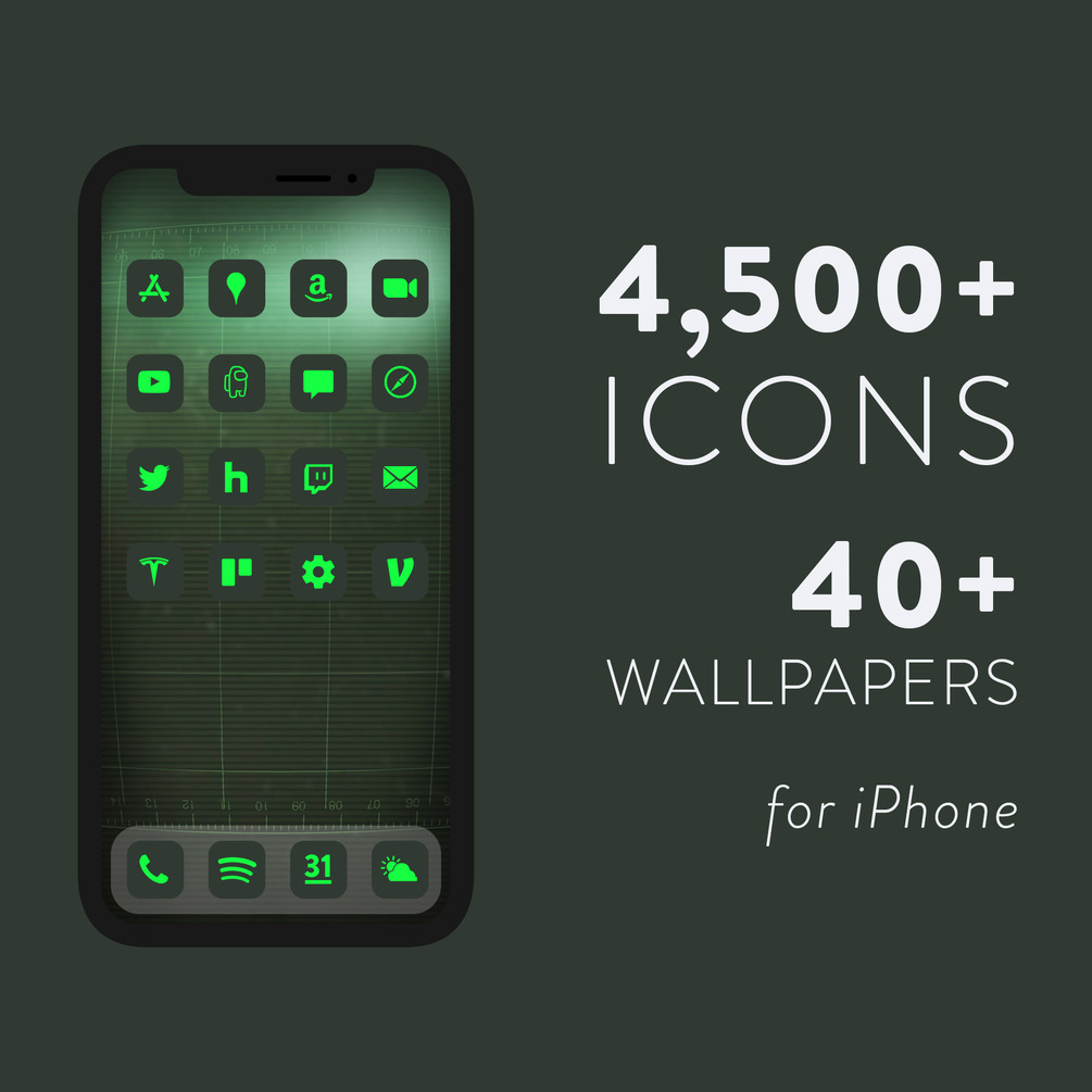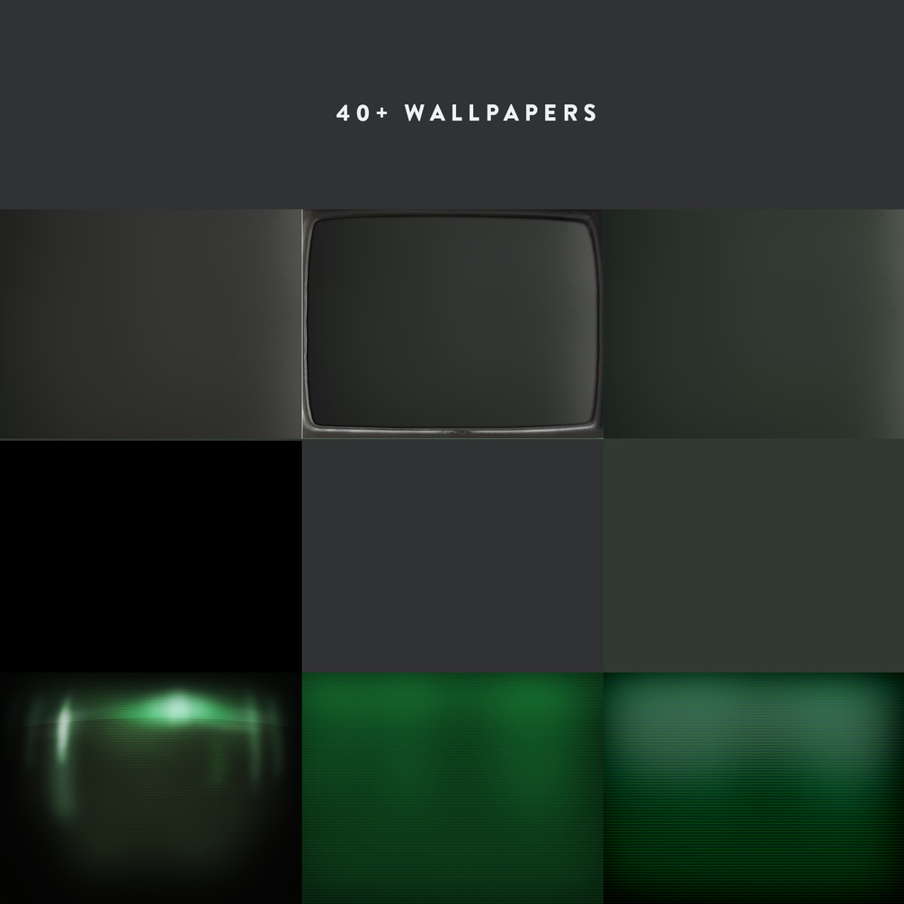 3 icon background colors included: black, grey & green. Transparent PNGs, & 40 wallpapers.
